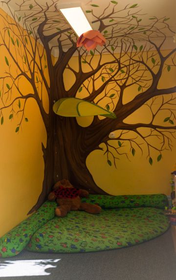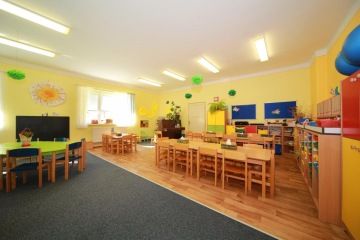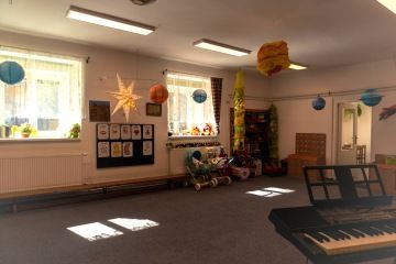 krásného parku. Je to přízemní budova s jednou třídou pro 28 dětí, s celodenním provozem.